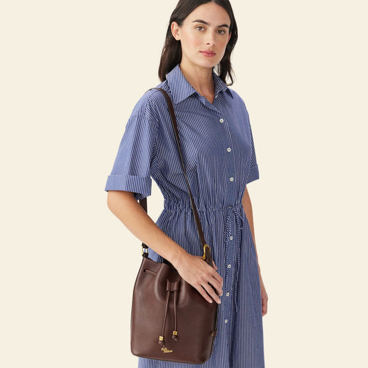 R.M.Williams Alice Tumbled Grain Leather Pecan Bucket Bag with Adjustable Strap